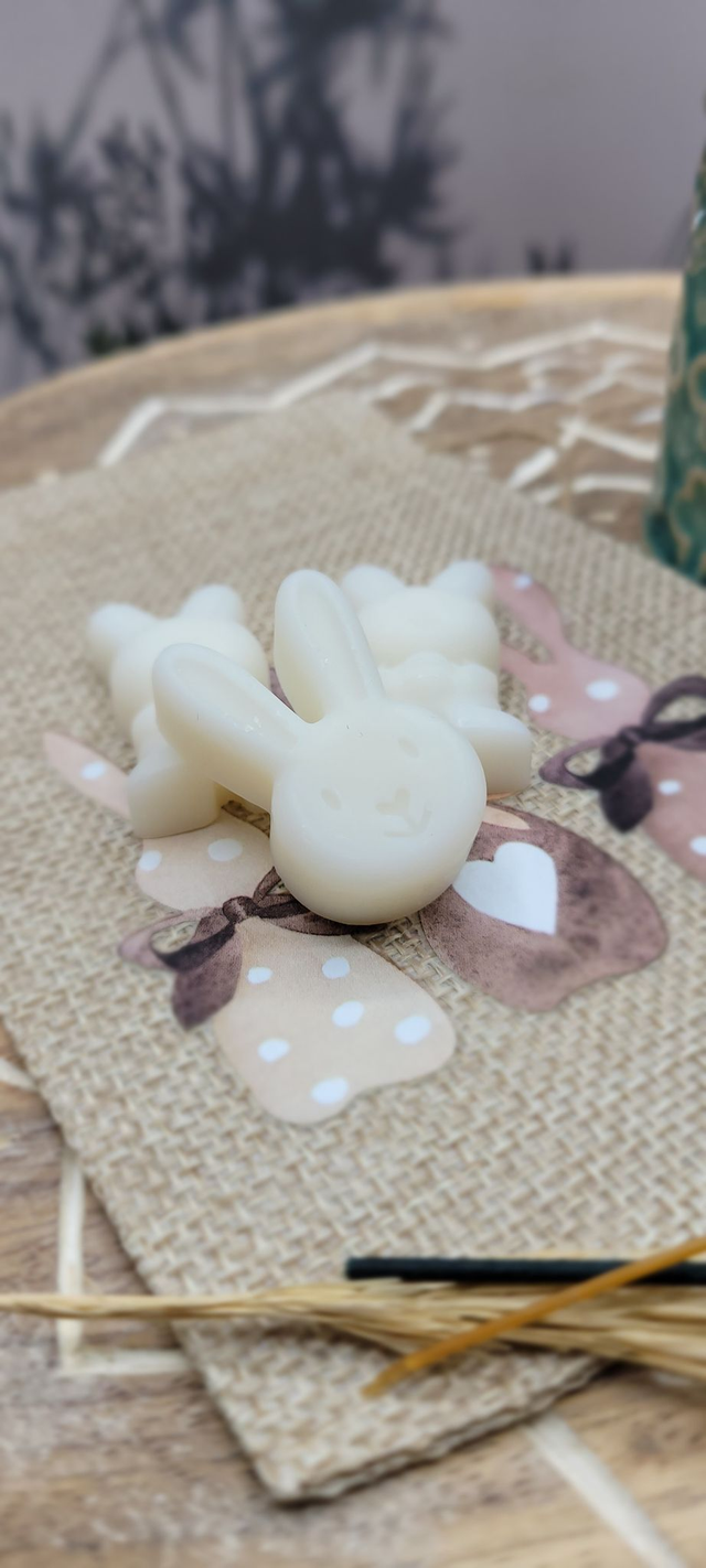 Laissez entrer la gourmandise et la douceur du printemps dans votre maison avec ces adorables fondants parfumés en forme de petits lapins.