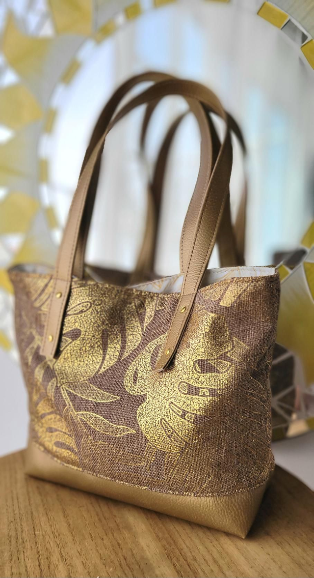 Sac cabas monstera doré