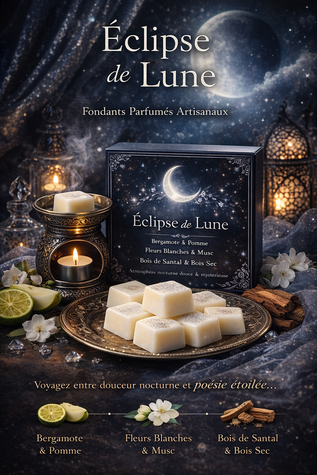 Eclipse de Lune: délicat, lumineux et mystérieux pour une expérience sensorielle unique qui apporte sérénité. Un voyage entre douceur nocturne et poésie étoilée (floral/poudré)